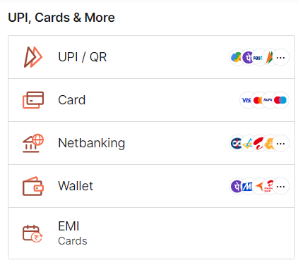 You may select the list of Available Banks/Wallet/UPI partners to make the payments in Razorpay